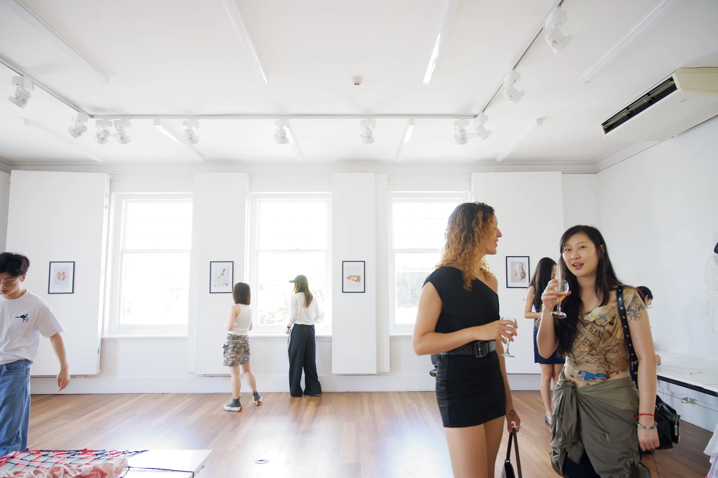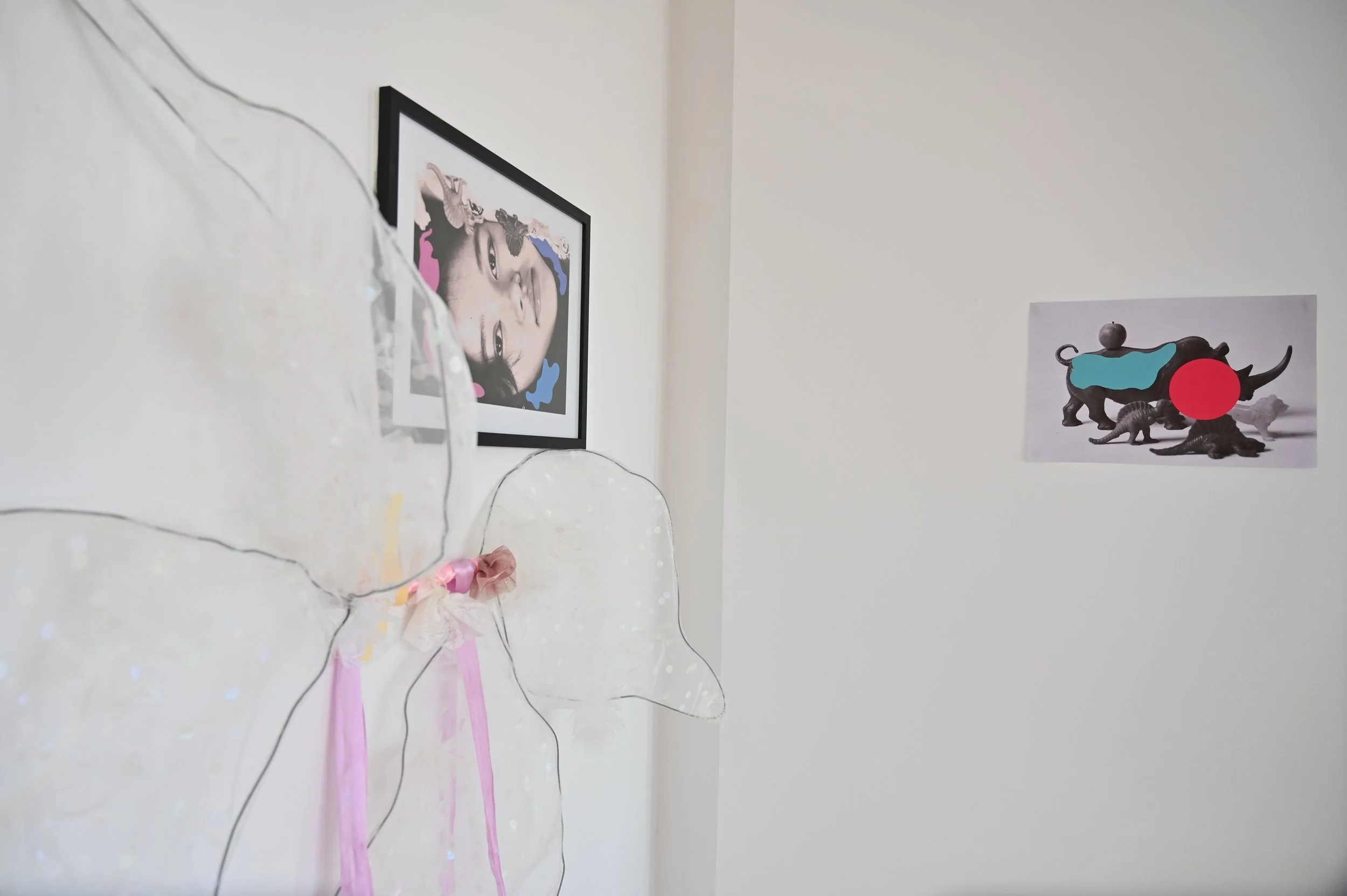 The entire project was a last-minute pact. My curating counsaltant, Louis, and I fuelled ourselves through days of caffeine-driven negotiations, pulling the show together thread by thread in a race against my departure. The morning of the opening was pure chaos—rushing, worrying, praying nothing was forgotten. With the calm help of my buddies urging me to "relax," we somehow perfected the setup, even when a summer-heated frame crashed down. We turned the pieces into a new feature.
